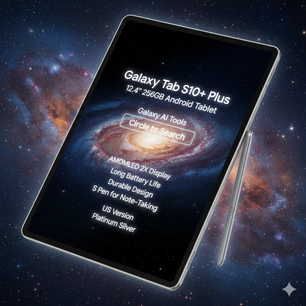 Table Galaxy Tab S10+ Plus 12.4” 256GB Android Tablet, Galaxy AI Tools, Circle to Search, AMOLED 2X Display, Long Battery Life, Durable Design, S Pen for Note-Taking, US Version, Platinum Silver Wednesday, January 28, 2026